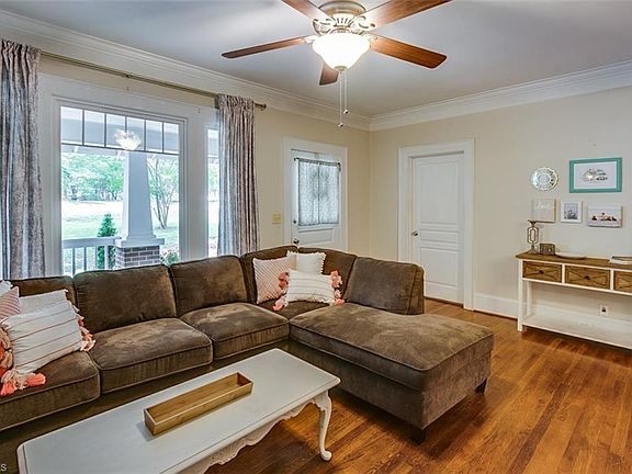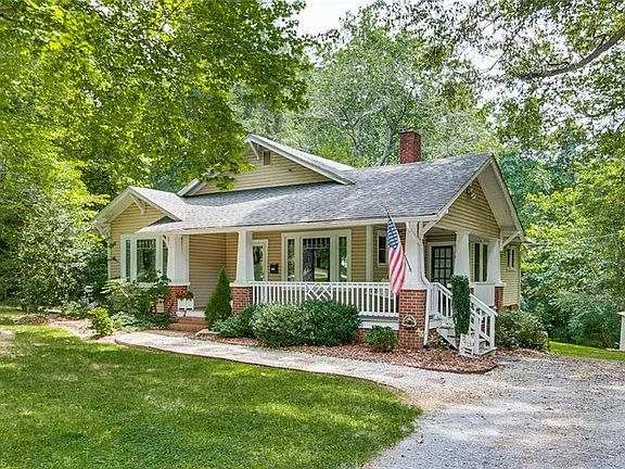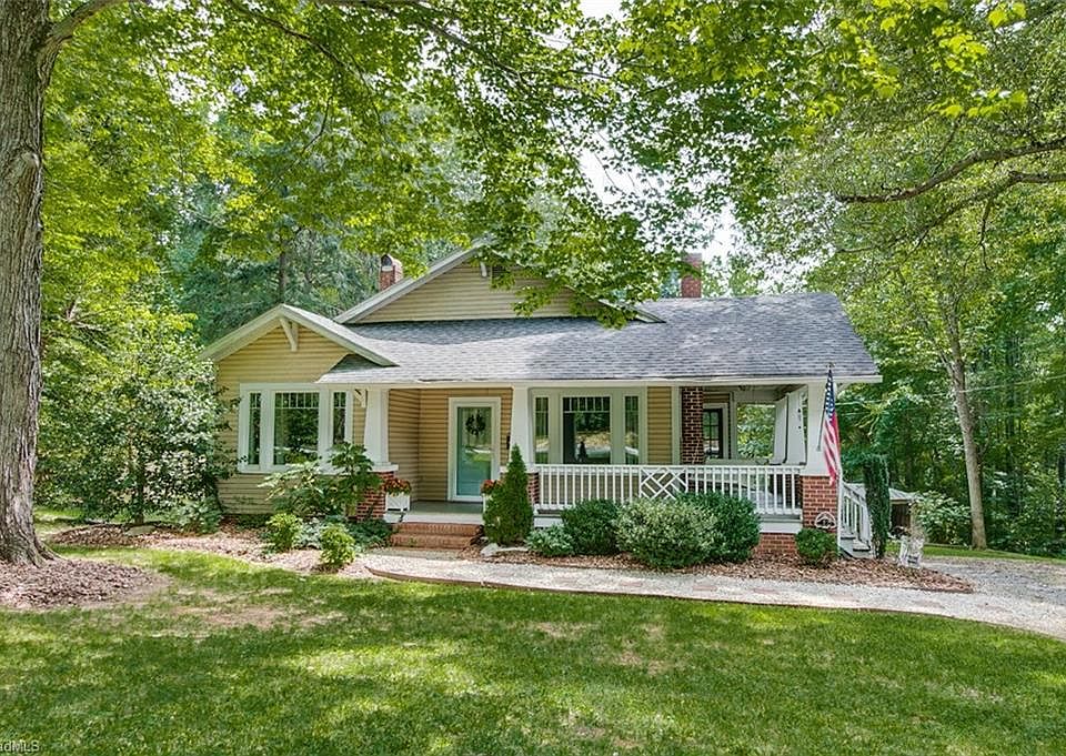 This cute bungalow style home with 3 bedrooms, 2 full baths is just minutes from downtown Asheboro, and is nestled back on a wooded lot. Tons of character, with wood floors and arched doorways. The kitchen has stainless appliances, and a kitchen island with a gas cooktop range, a wine refrigerator, and quick access through sliding glass doors to a side deck. The home features a fenced back yard, rocking chair front and side porch, large deck with pool.