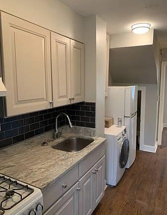 Beautiful, totally updated 1 bedroom, 1 bathroom , downstairs apartment for rent. Hardwood floors, new appliances, kitchen, and bathroom. Great closet and lots pantry space. Washer/dryer in unit. Large fenced in back yard! Owner pays utilities.
