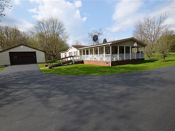 Great size home on a level lot, ready for your personal touch! This is a unique home, the garage has a large finished basement that is used as a game room with a large gas (propane) fireplace. The game room can aslo be accessed through the main house via staircase in the smaller bedroom. the living room is nice and large and has a sliding glass door that leads out to the wrap around porch. The ramp currently on the porch is removable and original stairs are still attached and useable. The home is heated and cooled by a geothermal system. The large kitchen features lots of cabinet and counter space and a large island and pot rack.
