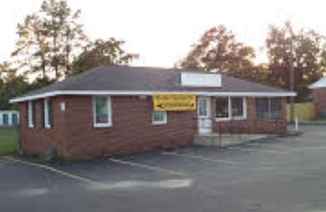 100 feet of frontage at a well traveled intersection of Old Evans Road and Martinez Blvd. The property has multiple parking spots in front, handicapped entrance, large open lot behind the building with double entrance gates on both sides of the building perfect for parking work equipment or work products.