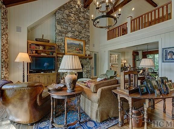 Wade Hampton Golf Club- This beautifully constructed and well maintained 3BR/3BA/2HBA home was COMPLETELY remodeled in 2009, very chic and current. Near the end of a quiet cul-de-sac, the setting offers a great deal of seclusion, yet fronts the 16th fairway and small pond. Peekaboo view of Chimneytop Mountain. Inside; tall pine doors, heart of pine flooring, two native stone fireplaces and painted tongue and groove paneling add to the warm elegance of the home. Galley kitchen at the heart of the home is convenient to the dining room, Carolina Room and small breakfast nook. Two sets of stairs access guest bedrooms above and two bonus areas, one which is ideal for last minute overflow guests, and is currently used for small den. The original Architect, Al Platt, has designed a wonderful fourth bedroom suite over the two car carport, should the next owner wish to expand.