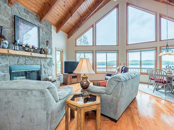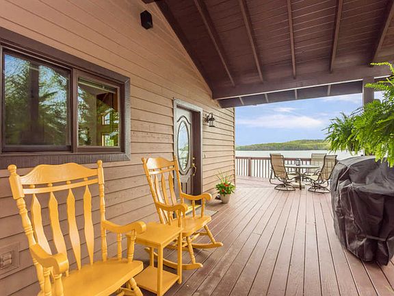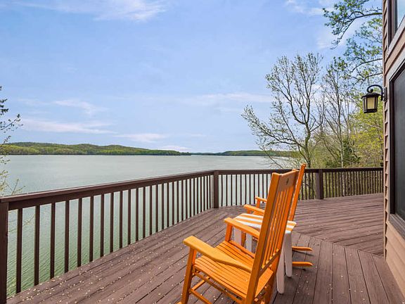 This beautiful lake front home is just waiting for you. Come enjoy the panoramic lake views from almost every room in this home. Offering 4 bedroom, 3 baths, gorgeous floor to ceiling Tennessee fieldstone wood burning fireplace with gas starter. Merillat manufactured hickory cabinets in kitchen, bathrooms, and utility room. G.E. stainless steel appliances. Quartz countertops in kitchen and bathrooms. Vaulted beam and drywall ceilings. R-30 insulation. Custom Marvin windows. Solid wood interior doors throughout the home. Pressure-treated decks on both levels. Beautiful loft area over looking living room. Basement area great entertaining. House comes FULLY FURNISHED. Move in ready!! Covered Dock with electric lift. YEAR ROUND WATER! CALL ME TODAY TO SCHEDULE YOUR PRIVATE SHOWING. THIS ONE IS A MUST TO TO APPRECIATE EVERYTHING THIS HOME OFFERS.