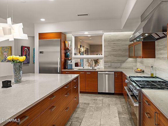 Experience luxury, privacy, and convenience in this single-level home in one of West Sedona's most desirable neighborhoods with expansive red rock views. The remodeled gourmet kitchen features luxury Miele stainless appliances, a custom quartzite island, 6-burner stove with grill, and a wine refrigerator. The great room and family room boast two fireplaces and coffered wood ceilings. The spacious primary suite includes a separate tub and shower, a large walk-in closet, and laundry access. Outdoors, enjoy lush landscaping, mature trees, and a private, heated pool for year-round resort-style living. No short-term rentals and Sedona's best hiking trails just steps away. See list of upgrades and supplemental remarks for this 3 bedroom, 2.5 baths, 3,412 sq. ft., luxury home. YOUTUBE AERIAL VIDEO: https://youtu.be/pMOm_8Gzmm8