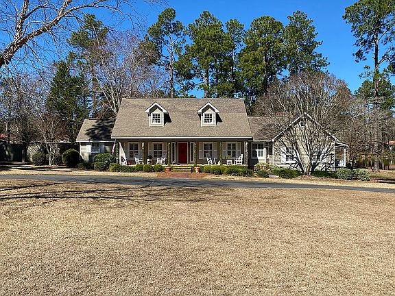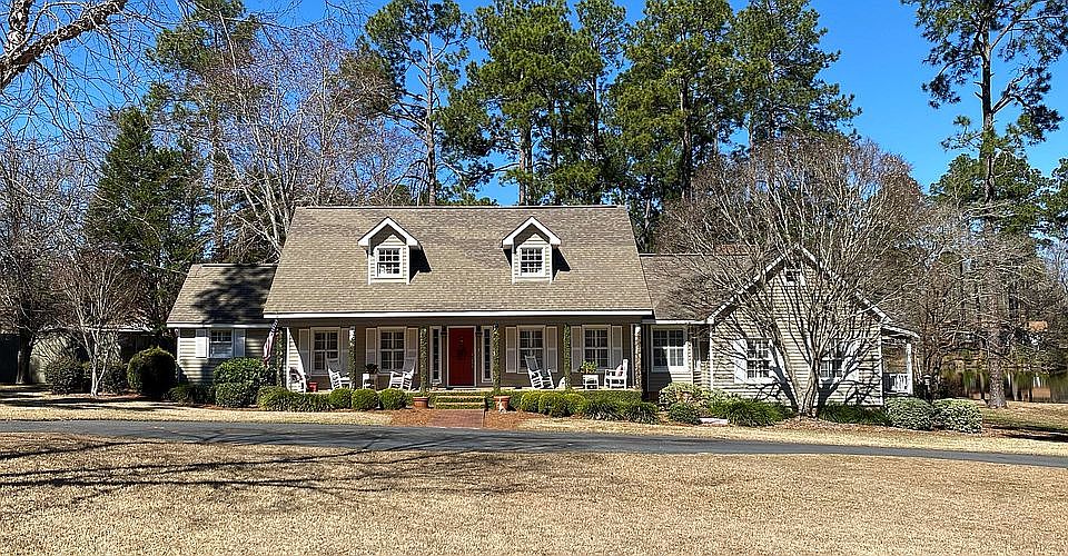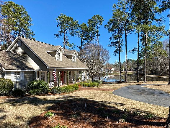 This 3,300 square foot home is located on approximated ¾ of an acre in Ogburn Subdivision and sits on a 3.4-acre pond. This four bedroom home is located at the end of a cul-de-sac in a fantastic neighborhood and has a ton of extra features including custom hardwood floors, plantation shutters and ¼ ownership in the pond that is well stocked with bass and brim. The yard is immaculately maintained with an inground sprinkler system and includes a circular drive and additional paved parking in the rear of the home. There is a large brick front porch as well as a large partially covered wrap-around porch on the back of the house overlooking the pond. There is also a large handi-house and an additional fenced-in/covered work-space for the handyman. The home has a master bedroom/bathroom downstairs with a walk-in closet. Downstairs there are 2 more half bathrooms, a sitting area, formal dining room, massive great room with a large fireplace and gas logs, a 2nd bedroom, a kitchen with a double oven, cooktop and refrigerator, laundry room, cozy breakfast area, living room and another sitting area both with access to a large wrap-around porch overlooking the pond. Upstairs, there is a small sitting area with 2 more bedrooms that have access to 2 separate bathrooms with a shared shower/tub combination. Both bedrooms have direct access to walk-in attic storage. There is an additional storage closet that is accessible from outside the home.