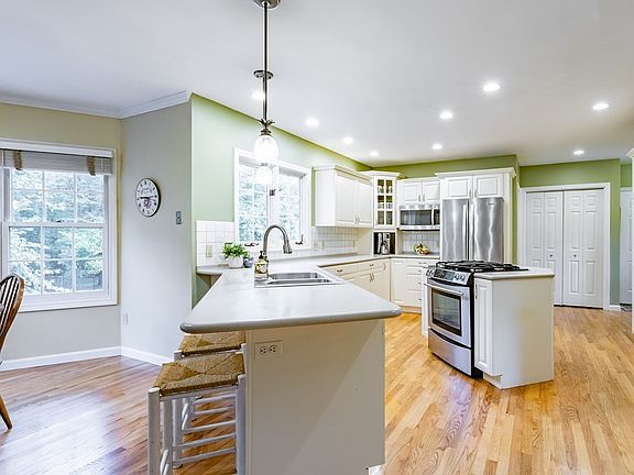 Welcome home to this meticulously designed + spacious 4-BR, 3.5-BA residence w/ 2 car garage, a beautifully fenced-in yard, deck, and patio, nestled on nearly an acre of lush land! This property is a true sanctuary, boasting incredible features + updates inside and out. Entertaining made simple in the open kitchen w/ island, breakfast nook and bar flowing seamlessly into the living room w/gas fireplace out to the slider leading to the deck, patio, hot tub and fenced area of the yard. Head out the gate to enjoy the beautiful land w/ unique trees, landscape and a seasonal stream. Formal dining room, sunny front room. 2nd floor hosts the Main bedroom retreat w/ full bath, featuring heated floors + dual walk-in closets. Also, spread out over 4 living levels with the walk-out finished basement and finished 3rd floor offering extra living space and endless possibilities. Conveniences include 2nd floor laundry, Central Vac, 6 panel wood doors, separate well and pump for the sprinkler system.