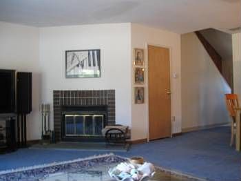 Enjoy easy living in this townhouse. Serene country area yet convenient to shopping, main highways, and schools. Open dining and living area with fireplace and French doors that lead to outdoor patio. Eat in kitchen with oak cabinets. New appliances include: stainless glass top range and dishwasher. New washer, dryer, central air condition, furnace, and hot water heater. New roof, vinyl siding, and poured concrete patio. Upstairs laundry area off the hallway. Master bedroom and bathroom with walk in close t.
