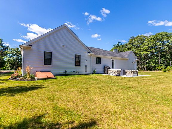 Welcome to this stunning 3 bedroom/2 bath Farmhouse style Contemporary Ranch, less than one year old & nicely situated on almost an acre lot. As you enter the foyer you will quickly notice the attention to custom details throughout. Wonderful cathedral open floor plan featuring a beautiful white custom kitchen with marble countertops, kitchen island, pantry, tile backsplash & recessed lighting which easily flows into the cozy living room with a gas fireplace. Primary en-suite with double closets & private spa bath with double vanity & tile shower stall. 2 additional bedrooms, hall bath & 1st floor laundry. Family room in lower level for additional living space & stone patio with gas fireplace to enjoy during the cool summer evenings. Luxury vinyl flooring throughout, central air, tankless hot water, well water system, 4 bedroom Title V, vinyl siding & garage. Close to area beaches, restaurants & shopping that Falmouth has to offer. Buyers/buyers agent to verify all information contained herein.