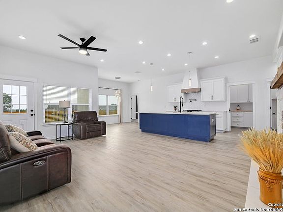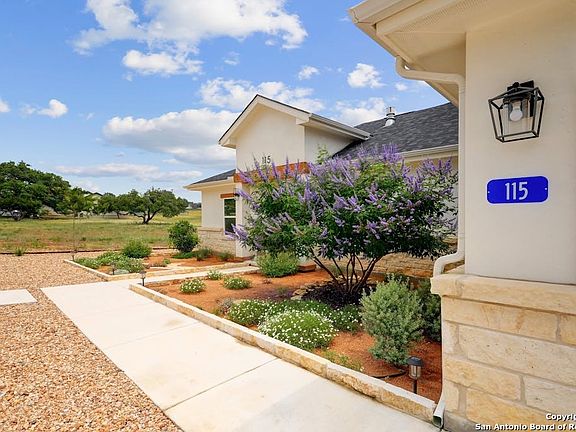 Beautiful like new Rockin J Ranch home built in 2022 is 1988 sq ft and features 3 bedrooms, 3 full baths, 2 car garage w separate golf cart garage. The owners have made numerous improvements to the property which include adding gas lines and propane tank, stone gas fireplace w custom mantel and gas logs, gas range, butlers pantry cabinets, laundry room cabinets, decorative master shower tile, water filtration system, dining and kitchen light fixtures, window blinds, circular driveway, 25 X 18 back patio half is covered with a pergola with UV resistant roof, gutters, all landscaping which includes rock, sod, trees, bushes and ornamentals, privacy fence, including 3 water collection tanks and front beds with water drip line irrigation. Vaaler Creek Golf Club allows Rockin J Ranch property owners 3 rounds of golf a month. Rockin J Ranch amenities include a junior olympic pool and Ranger park. Move in ready!!!!