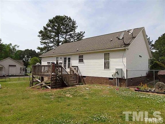 Great home in quiet subdivision outside Benson with no city taxes on a .92 acre lot. Covered porch, 3 bedrms, 2 baths, split floor plan. Kitchen has lots of counter space, center island & separate dining area. Large family room has vaulted ceiling w corner fireplace w/gas logs. Master bedroom has vaulted ceilings, large master bath, walk-in closet and sep shower. Awesome backyard for kids & pets features large deck & a treehouse, and 5' fence!! So convenient to I-40 Raleigh. Large wired workshop!!