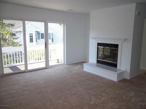 The VIllas, Upper Unit backs to the woods. Freshly painted and new carpeting. Living room with Gas Fireplace and sliding door to balcony overlooking woods. Master Suite has 2 closets, Full bath with double sinks, soaking tub and separate shower. Sunny 2nd Bedroom with Bay window plus a den with French doors. The Villas offers pool and tennis courts and a community room. Located very close to shopping and only minutes to the beach, golf, train, and public transportation. Owner can do a quick closing.