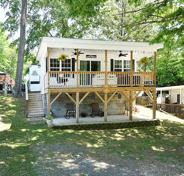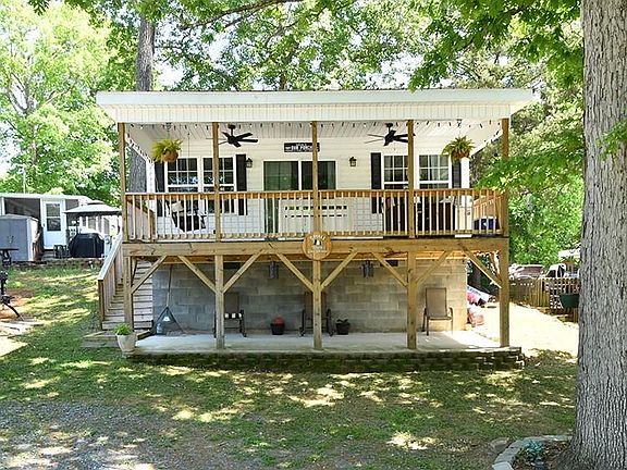 Your perfect vacation spot at Badin Lake Shores that sleeps up to 7 people! Escape to tranquility in this gated lakefront community! Enjoy stylish outdoor living in a Skyline Scout Camper w an addition built in 2022. The camper features a private BR, a full bath, a cozy kitchen w/ a breakfast area and a den w/ a daybed, offering practical storage underneath and comfortably accommodating 1 to 2 guests. 2 bunk beds are tucked away behind a curtain, off the main living area. There is a 2nd private BR in the addition, allowing for a total of seven people! Sliding doors lead outside onto a covered porch, ceiling fans creating the perfect setting for dining or evening relaxation. Fire up the grill and enjoy quality time in the great outdoors or take part of the resort's amenities, incl. a swimming pool, sandy beach w/ a designated swimming area, basketball courts, volleyball, playgrounds, and a fishing pier. Unwind at the clubhouse, or relish waterfront views from the boardwalk restaurant.