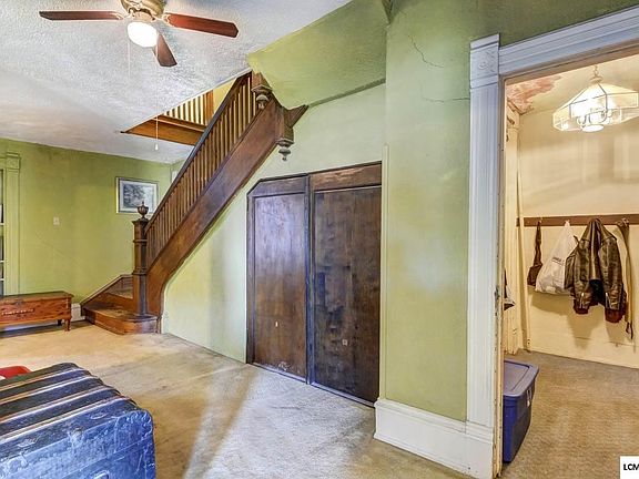 Conveniently located close to historic downtown Lincoln, Illinois, you will find this roomy 5 bedroom, 2.5 bath two story home with loads of space -- priced to sell! Step inside and be welcomed by a comfortable foyer, a large living/dining concept with great floor space and ample natural light, comfortable family room with woodburning fireplace -- has an exterior access point that leads to a large rear covered porch, generous eat-in kitchen with tile countertops, center island/breakfast bar, abundant cabinet space, dishwasher, range/oven, and refrigerator to remain, and a rear exterior access point, generous storage room -- could be easily converted into a sixth bedroom if needed/desired, nice sized bedroom area with skylight, hall half bath, and hall laundry facilities. On the upper level, you will find four additional bedrooms -- two with wood flooring -- one bedroom is totally separate from the other upper level bedrooms and features a full adjacent bath (plumbing is currently disconnected to bath) -- bedroom accessible from a separate staircase, a full bath with a clawfoot tub, and a great hall built-in. Property also features a large covered front porch, roomy covered back porch, quaint rear deck, fenced front yard, one car detached garage, various newer vinyl windows throughout, large basement for storage, LOW taxes -- the list goes on! Loads of space for the $$ -- property being sold "AS IS, WHERE IS." Motivated sellers invite you to check out all of the possibilities found within 115 Pulaski Street, Lincoln -- make this one shine!