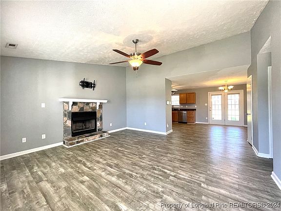 Pictures were taken prior to current tenant move in This charming 3-bedroom, 2-bath ranch-style home is situated in a peaceful cul-de-sac. The living room features a cozy fireplace, perfect for relaxing evenings. The kitchen is equipped with stainless steel appliances, and the entire home boasts laminate flooring throughout. Enjoy the spacious, fully fenced backyard, ideal for outdoor activities and privacy. The property also includes a washer and dryer for your convenience. Conveniently located within a short drive to Fort Liberty, Fayetteville, and Raeford.