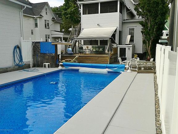 Great Home in North Scranton.Home is a Victorian style home. Well maintained and cared for. Large rear deck leads to a 16x36, solar heated in ground pool.Large 4 car 2 story garage with plenty of storage on upper level.Home has 3 Marble Fire Places and 2 working Fire Places. Can be a four bedroom by using a large partial kitchen on second floor, also additional room in the walk up attic area.