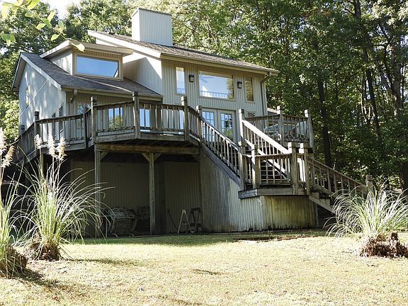 Lakeside contemporary approx. 3017 sqft home located in good location just minutes from local shopping center, essentials & volunteer Fire Dept. This 3BR/3BA home has on its main level Living Room, Dining areas, Kitchen, Master Bedroom & Bathroom. Access to the lakeside deck from LR & MBR. Open living area with upper loft, BR & BA. Lower level has game room, large Bathroom/Laundry Area, Hot Tub & Sauna area, Bedroom. Walkout to lakeside patio & backyard. Double detacahed garage with storage area above. Steps to double dock. Wide cove views and main lake in sight from the dock. Gravel circular driveway. Shared well with neighbor (well on this lot). County water is available.