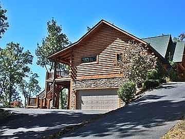 Log Home, long range mountain views, gated subdivision, two fire pits, two gas fireplaces, 1.23 acres, 12 to 22 foot ceilings, over sized two car garage, large decks upper and lower, hickory floors and cabinets with granite counter tops. Huge kitchen and game room with full wet bar. All rooms are very large and roomy with all three bedrooms as en’ suites.