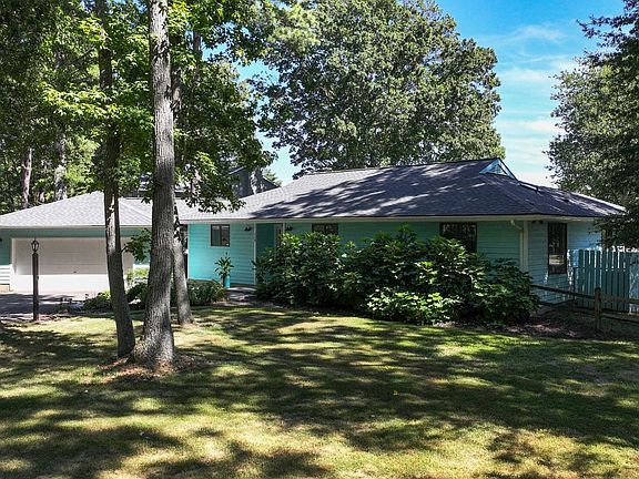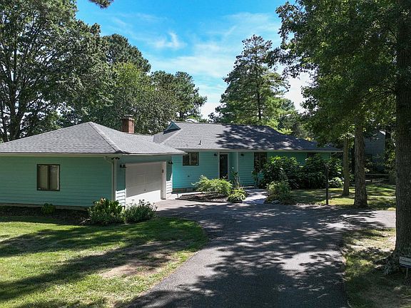 Nestled in the prestigious community of Queen Anne Colony, this tropical, turquoise rancher is perfectly situated on a gorgeous, wooded, 1/2 acre lot, with a 2 car garage and has stunning views of the private, in-ground, gunite pool and the Blue Heron Golf Course, making it the perfect spot to relax and entertain guests. The outdoor space is truly the highlight with a newly resurfaced pool, a stamped concrete patio, a screened-in gazebo with a 4- person, Hot Springs hot tub, a mounted, flat screen TV, a new skylight, a screened-in breezeway that is a perfect spot for a picnic table and even has a large shed to store your pool supplies, The hot tub is even accessible from both the backyard and the primary bedroom, making it the ideal retreat at the end of the day. The backyard is surrounded by a split rail fence (wired) and has a dog run on the side of the house making this home pet friendly. Inside, the home features hardwood flooring in the living room, dining room and kitchen and LVP flooring in the bedrooms. The open layout has a seamless flow for both entertaining and everyday living. From the living room, you can enjoy the view of the pool through the sliding glass door. The fireplace has an insert, providing warmth and ambiance, without the firewood and matches. The gorgeous, gourmet kitchen is equipped with beautiful, custom cabinetry with a built-in wine rack, a stone tile backsplash, granite countertops, a large island and stainless-steel appliances, including a new refrigerator in 2022, a pantry and recessed lighting. The primary bedroom has an ensuite bath with a barn door, a glass shower with contemporary tile, a glass bowl and a new skylight. The hall bath has neutral, gray tile, a double vanity with drawers and a quartz countertop. This sought-after neighborhood also offers water access to the Chesapeake Bay, where residents enjoy kayaking, paddleboarding, and fishing. If you like walking or biking, the trail begins at the entrance of the neighborhood, making it easy to enjoy. The Bay Bridge is just minutes away, making commutes or weekend trips a breeze. The upgrades include:  New roof and skylights (Jan 2023)  Pool resurfaced with new coping/tile (May 2023)  Pool filter (2023) and pool pump (2021)  Water softener (2023)  Sump pump (2020)  Stamped concrete patio around the pool and out front  Sliding door to pool (2021)  Well pump replaced (2023) This home offers more than just a place to live -- it is a lifestyle, surrounded by natural beauty, recreation, and comfort. Call or email for more information or to schedule a showing.