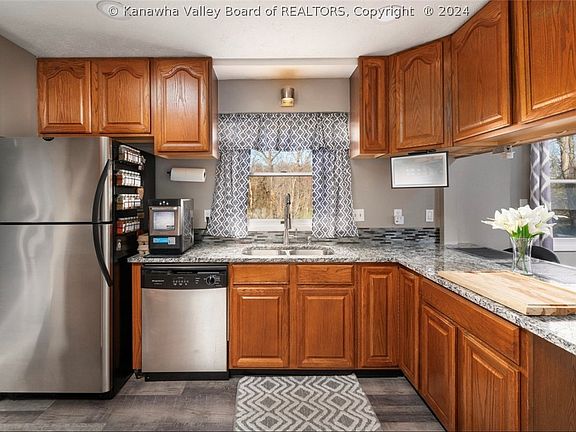 This inviting abode in the heart of a thriving community is almost fully updated & offers an array of recreational amenities just steps away at the nearby community park. Gather with friends to enjoy play sets, tennis court, basketball hoops & park grill & picnic tables. Inside, discover a meticulously updated interior w/ modern eat in kitchen space that allows you to dine by wood burning fire, there is a dedicated home office, room for gym, theatre & rec space or design it around your passions. Home has ample storage & lots of natural light. The primary suite is immense in size & has a stone wood burning fireplace & ensuite w/walk in closet. Enjoy al fresco dining on the rear deck or just relax in your serene surroundings. This home is not just a retreat but super convenient to nearby restaurants, blue ribbon schools, FMC Sportsman’s Club, YMCA camp & nearby I64 for easy travel to Charleston or Huntington.