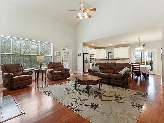 Steps to the Beach Alert and Water View right from your porch Alert! This 3 bedroom 2 bath home is exactly what you have been looking for. So many features to mention plus it is located on 4 lots and part of a 5th! You are surrounded by beautiful scenery from the all the trees, land, and the water.Screened in areas on the bottom and top level make it great for all outdoor entertaining. Home is supported on 10 ft centered square wood pilings.Once inside you can entertain some more with this open floor plan. Lots of beautiful windows to let the light shine in! Master Suite on second level with 2 bedrooms and a bath on the first level. Your search stops here! Do not let this one go! This home is a keeper!