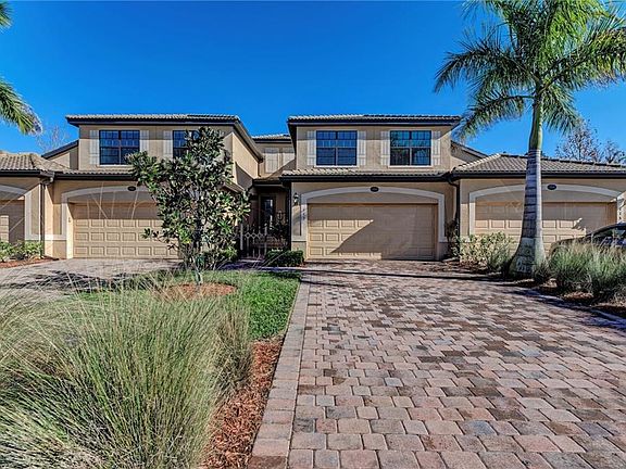Exceptional tree lined lake view is only one of the many reasons this home is a must see! Enjoy the water vistas and nature at it's best, from the over sized screened porch, master bedroom, great room and breakfast nook. This 3 bedroom 2 bath home offers a split floor plan with over sized bedrooms. Retreat to the spacious master bedroom with his and her walk in closets. The master bath has double vanities, a shower and separate garden tub. The kitchen has stainless steel appliances, granite counter tops and solid wood cabinets. This newer town home has an over sized 2 car garage and ample storage on the first level. The home offers concrete block construction with impact resistant windows and sliders. Located on a cul-de-sac in a fabulous neighborhood that includes near by parks, a dog park, and shopping. Over 2100 square feet of single floor living! Arrange for your private showing today.