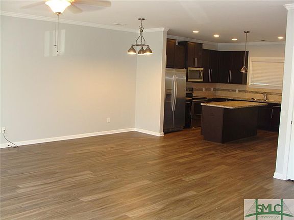 This beautiful 3 bedrooms 2.5 bathroom townhome is move-in ready! If you are tired of cutting the grass, come and check out this home! Walk into the large family room with contemporary luxury plank vinyl flooring and abundant light. The open floor plan living/dining/kitchen offers an island for counter space and seating for those that want to be in the kitchen and out of the way! There is a half bath downstairs and access to a covered patio. Upstairs you will find the master bedroom with a master bath that offers dual vanities, a separate tub, and a shower. There are two spacious bedrooms and a full bath. Minutes from restaurants and shopping. Convenient to Gulfstream, JCB , HAAF, FT Stewart and hospitals.