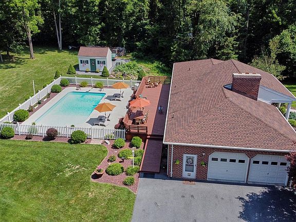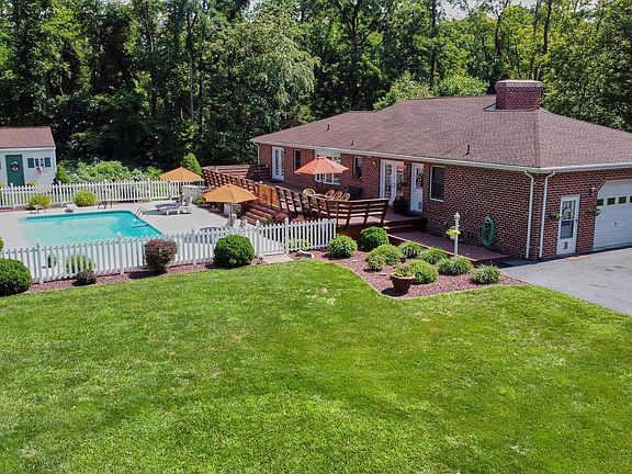 One level living with peace and quiet of a country setting w/in ground pool. Get away from Hustle & Bustle. Located just outside of Carlisle PA just minutes from I-81 and PA Turnpike and Carlisle Fairgrounds this home is perfect for those who love quiet, privacy and have some toys they want to work on or store. The original owner has decided to move south and sell their all brick rancher on 3+ acres, with 4 car garage (2 car attached, 2 car detached), 4 bedroom, 3 full baths. In ground pool. No carpet on main level. Large living room w/13' high ceiling & brick fireplace. Hardwood floors. Huge kitchen w/Corian countertops, Stainless Steel appliances. 1st floor laundry, full basement w/walkout & 4th bedroom w/walk-in closet. Supplemental wood stove heat in basement. Large family room w/workout area. 36x18 in ground pool. 54x14 deck around pool. This home has a many unique features that include driveway alarm, cameras, 12x8 shed, 12x20 pool building/workshop. The detached garage has 2 garage bays perfect for the car enthusiast. That building has 1 automatic door and the second door has an automatic door that is not currently attached due to car lift( available for for sale). There is additional storage above the 2 car garage in the loft. There is a list of items for sale attached to property disclosure. Additional parking for R.V behind 2 car garage and beside garage. Attached 2 car garage has central vacuum, frost free hot and cold water lines, high ceilings, built in storage and a wood pass through to the wood burning fireplace. The very large Walk out basement has rec room and work out area. This house must be seen to be appreciated.
