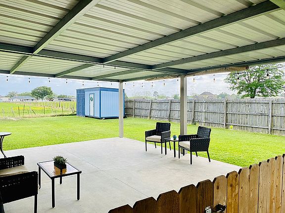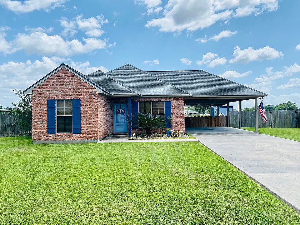 Our sweet home is situated in a country neighborhood on larger than usual lots (40 feet between homes). 9ft ceilings throughout with a cathedral ceiling in the living room, stained beams, crown moulding, and raised panel French wainscoting. Nice open floor plan and the majority of the home has been re-painted. Stained concrete flooring in living, tile in bathrooms. Granite countertops in the kitchen, stainless steel appliances, a 6ft bar with exposed brick, and custom oak cabinets, and brand new range microwave. Right next to the kitchen is a nice sized laundry room with large pantry and newly installed custom storage cabinet. The master bedroom has a walk-in closet, tray ceiling, engineered wood floors, and an en suite bathroom. The other 2 bedrooms have large closets with upper and lower rods. Wood laminate added in 2018 in guest bedrooms. Outside there is a large backyard, two car carport, and an extended patio which was recently added, along with a new storage shed. New roof was added in 2017, not in flood zone and never flooded. Recent appraisal completed at asking price. Evidence of pre-approval including down payment and closing costs must be provided prior to any showing or any offer.