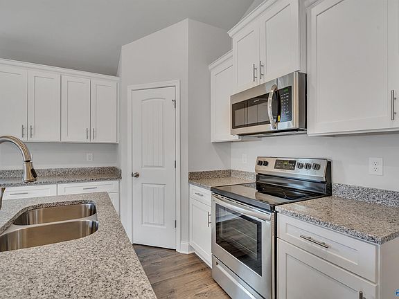 This 1525 sq ft rancher features 3 bedrooms, 2 full baths, and an open layout with luxury vinyl plank flooring in the main living areas. The kitchen includes a large island, granite countertops, and modern finishes - perfect for cooking and entertaining. The spacious primary suite offers a private bath and ample closet space. All on one convenient level, this home blends style, comfort, and functionality. This community offers a playground and walking paths to enjoy! This great location is convenient to Downtown Huntsville, I-565, Toyota Plant, restaurants, lots of shopping and the Colonial Golf Course! 1-2-10 warranty