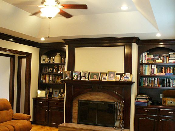 - Ceiling Fan(s), Recessed Lighting, High Ceilings, Built-Ins, Tray Ceiling(s), Ceiling Fan, Floors-Hardwood, Molding, Bookcase