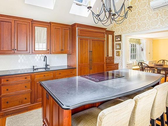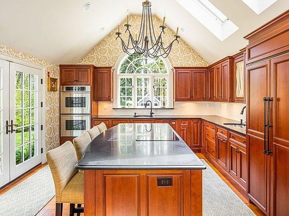 • Kit Dscrp: Flooring - Wood, Kitchen Island, French Doors, Remodeled, Ceiling - Vaulted