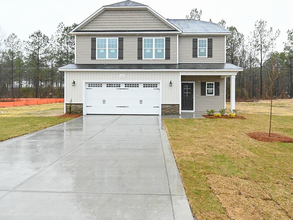 Move In Ready! New construction home w/ open floor plan. Rocking chair front porch. Also offers a beautiful open foyer w/ powder room & coat closet off from it. The large family room w/ fireplace open to the dining area & kitchen w/ granite counters, island & pantry; the drop-zone. All bedrooms are located upstairs; a large second bath, as well as the laundry room. The owners suite w/ ensuite bath features a double vanity, separate shower, tub & walk in closet. Stainless steel appliances! Rear Covered Patio!