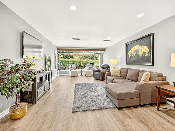 Lovely ground floor condo in the desirable Riverpark Terrace Condominiums! This 1288 sq ft condo has fresh updates and is move in ready. 1 bedroom, plus office with closet and 2 windows could be 2nd bedroom, 2 full baths & open floor plan. Recent updates include all new interior paint, including cabinets, all new flooring & baseboard, upgraded HVAC, new water heater & new can lights in the living room. Both baths have been updated in the last few years. Spacious living/dining room with pass thru to the kitchen, solarium windows overlooking the pool and yard. Kitchen features tile counter tops and new garbage disposal. Primary suite has door out to the covered patio, nice bath with dual sinks, tile shower and walk in closet. Comes with covered parking spot with storage closet plus 1 guest parking spot. The HOA covers landscape exterior maintenance, pool, water, sewer & garbage. Great location next to Riverside Park and downtown!