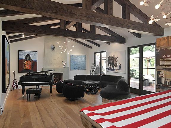 Spectacular one-level home inspired for California living. Gated grounds of almost one acre with crushed stone driveway, palms, amazing vegetable gardens, large pool, spa, and vast level lawn. Cathedral ceilings and crisp white walls and lighting designed for art display. Fabulous great room with gourmet kitchen and authentic pizza oven, dedicated office, plus lower-level recreation/media room. Main home has 4 bedrooms, 3 full baths, and 2 half-baths plus there is a guest house complete with kitchen, 1 bedroom & 1 bath. Ideal location just one block to the center of town and acclaimed Woodside School.