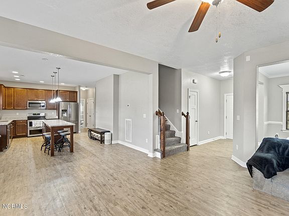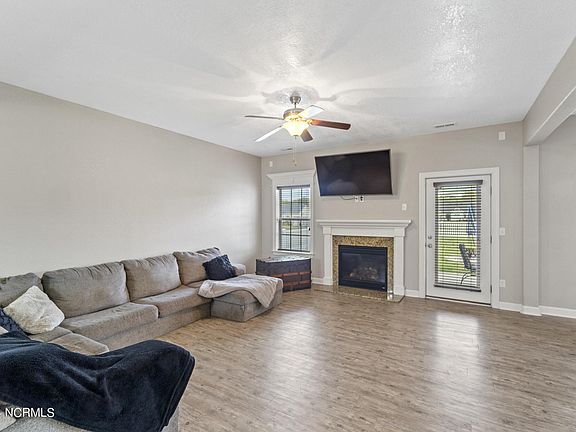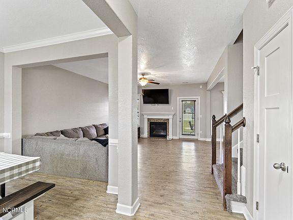 Welcome Home! Move in ready 5 bed, 3 full bath home on 0.69 acre lot! Located only 9.5miles from VA/NC line in a small neighborhood with community pond and walking path. Downstairs you'll find 9ft ceilings and durable LVP flooring throughout, open concept living with designated dining area, living room with gas fireplace and kitchen with extra-long island, granite countertops and SS appliances including double oven. Off the kitchen, you'll find a first floor bedroom/office and full bath. Upstairs the primary suite has 2 closets, soaker tub, stand up custom tile shower and double vanity. Also upstairs, 3 more nice sized bedrooms, a full bath with double vanity and laundry room. Extra-large driveway out front and then an oversized patio with half being covered, vinyl fence and storage shed out back. About 1 mile from 2 different boat ramps giving access to Tulls Bay.