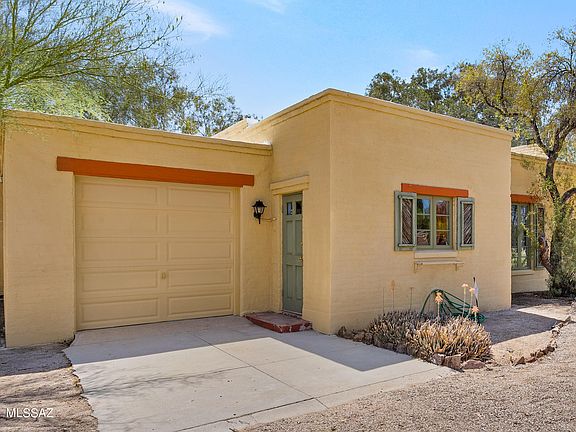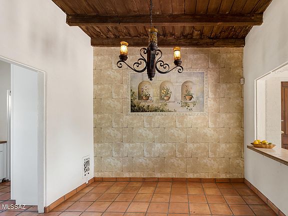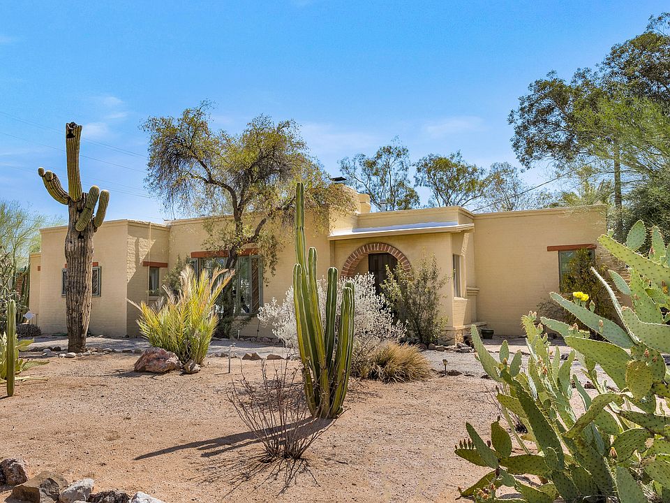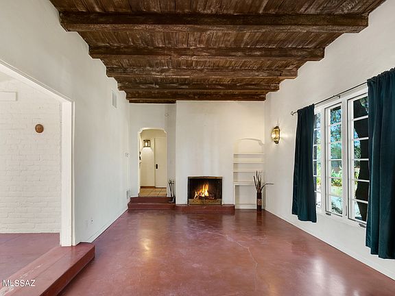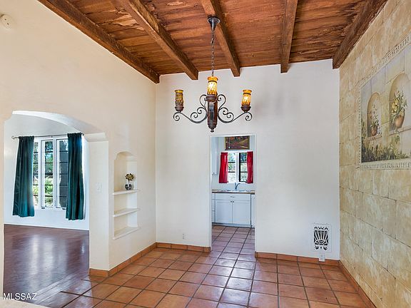 * Timeless classic masonry constructed home located in desirable historical San Clemente neighborhood. Territorial style with southwestern ambiance encompassing 1483 sq ft. Front porch entry to graceful open floor plan that boasts 2 BR/ 1 BA.with garage,plus enclosed AZ room. Architectural elements from1936 have been preserved include: gorgeous exposed wood beam ceilings, wood lintels, refinished hardwood floors, colored concrete, built in niches and dual pane energy efficient windows. Luminous AZ room with french doors makes a great place to read or enjoy the sunrise. Rare opportunity knocks here at this double brick quality constructed home. All the plumbing has been replaced. Roof is under warranty and newer AC. Large .23 of an acre lot.Walk to Reid park to enjoy, golf, tennis,