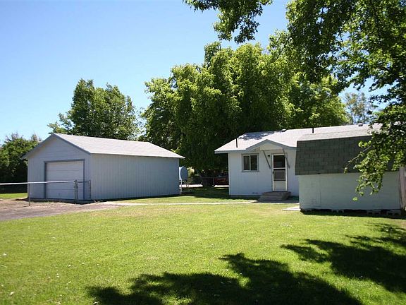 This is a Jewel! Modern two bedroom home in tip top condition. There is a storage building and 20 X 40 garage shop area. Located on two lots with green lawns and shade trees. The Property is fenced partially with chain link fencing including three drive thru gates and parking pad to park RV or boats. Convenient kitchen with natural wood cabinets,stove and refrigerator included. It is in immaculate move in condition. Hurry for this special home. Assessors map and floor plan in documents.