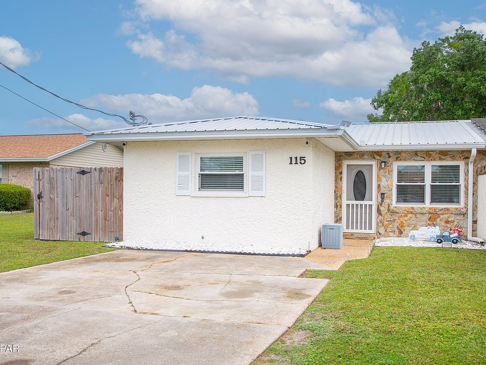 Move-In Ready Half Duplex Close to Tyndall AFB. Welcome home to this beautifully maintained 3-bedroom, 2-bath half-duplex featuring a desirable split floor plan and plenty of updates! You'll love the bright and open layout with French doors off both the dining area and master bedroom leading to a private outdoor patio—perfect for relaxing or entertaining. Recent upgrades include a new A/C (2021), a metal roof 2019, and high-efficiency windows, Hot water heater 2024, dishwasher 2024, microwave 2024 for peace of mind and energy savings. This cinderblock construction with stucco overlay offers durability and a firewall for added safety. The property also includes an attached storage area at the rear of the home. Located on South Jan Drive, this home is conveniently situated in the heart of Panama City—just 10 minutes to Tyndall Air Force Base, shopping and dining, and only 30 minutes to Panama City Beach. If you're searching for a low-maintenance, move-in ready home in a great location, this is the one! Schedule your showing today!