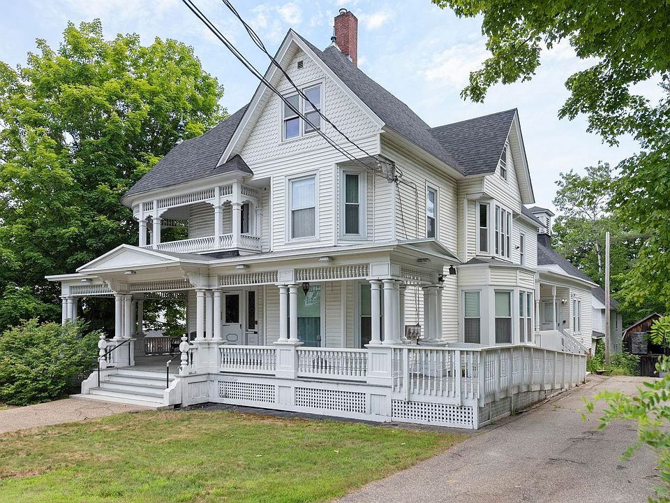 STEP BACK IN TIME: Welcome to a piece of history nestled in Bristol Village. This Grand Victorian home offers a rare opportunity to experience the elegance and grandeur of a bygone era. Step onto the wrap around porch and enter through the ornate front door into a world of intricate woodwork, curved walls, high ceilings and original wood hardwood floors. Enjoy gatherings in the generously sized living areas perfect for entertaining guests or simply relaxing with family. Lovingly maintained by the same family for 68 years, used as a 2 unit building. One unit consists of the 1st floor which was used as an in-home business with 2 half baths, and 2nd floor containing 2 bedrooms, a full bath, a living room, dining room, kitchen, pantry and sitting area with 1st & 2nd floor porches. The other unit is on the 3rd floor and was recently renovated. It consists of 2 bedrooms, an eat-in kitchen, living room & full bath with access via a side porch. Attached to the building is a 3 story barn with parking for 3+ cars, storage, and 2nd floor semi-finished space, there is even 3 animal stalls and original hay racks in place. There is a full basement and a garage under. The property has two driveway accesses and is zoned Village Commercial. Just 6 miles to I-93. Access to beaches on Newfound Lake.