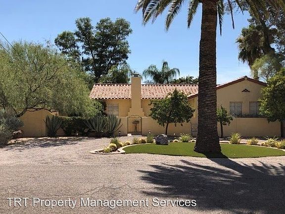 A Jewel in Tucson - Nestled in the lovely San Clemente neighborhood, surrounded by landscape of lush foliage and mature shade trees, is a beautiful 3 bedroom 2 bath home with guest house, pool and Jacuzzi. Spacious living/family rooms include fireplaces and ceramic tile throughout. The formal dining room with its ornate chandelier, which adds to the charm of the home and is serviced nicely by the fully equipped, updated, kitchen that includes all Stainless Steele appliances, complimentary cabinets and back-splash. Let's not forget the large pantry and extra cabinet space. French doors from the master bedroom open to a resort style patio, pool and Jacuzzi. Plenty of room for entertaining and or relaxing. Evenings by the pool might be chilly, but with the standing fireplace, its warmth will easily take the chill off. Beautiful decking leads to the air conditioned Guest House with a walk in shower and French Doors. The BBQ is hooked up for gas. In addition, a full size washer/dryer and pool service are included. This home and guest house are located central to all that Tucson has to offer: shopping, dining, entertainment and Reid Park, for the golfer or jogger in the family. A jewel in the center of Tucson, you don't want to miss. All information deemed reliable but not guaranteed. Tucson Realty & Trust Co. Management Services, L.L.C. complies fully with all federal, state and local Fair Housing laws. (RLNE5019049)