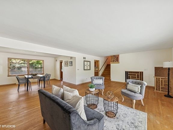 Welcome to this unexpectedly spacious and well-built mid-century gem in the heart of Arlington Heights! This unique split-level home boasts over 3000 square feet of living space, offering much more than meets the eye. Step inside to discover oversized bedrooms and baths, a large square family room complete with wet bar, and a light-filled living room, all designed for comfortable living and entertaining. The eat-in kitchen provides ample space for casual dining, while the hardwood floors throughout most of the home add a touch of timeless elegance. The English-style sub-basement, with windows above ground, brings in extra light and offers two potential bedrooms or offices, making it a versatile space for your needs. Embrace the mid-century vibe or bring your designer to add your personal flair. Enjoy the very private backyard, complete with mature, professionally maintained landscaping-perfect for outdoor relaxation. The recently refinished cedar siding adds to the home's charm and curb appeal. Located within walking distance to the train and downtown Arlington Heights, Pioneer Park and Westgate and South Grade schools, this home offers convenience and a prime location. Award winning District 25 and 214 schools. Don't miss out on this incredible opportunity to own a spacious, light-filled home with endless potential. So much home for the money, this property is ready for your updates and personal touch. Schedule a showing today and imagine the possibilities!