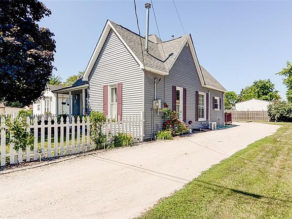 Absolutely adorable 3 bedroom home!! Lots of charm and updates!! Freshly painted throughout. Roof 7 yrs, back metal roof and porch roof 1 yr, boiler 5 yrs, a/c 5 yrs, H2O heater 5 yrs, replacement windows. 2 bedrooms on main floor and loft bedroom upstairs. Great deck for entertaining. Beautifully landscaped yard full of lots of perennial flowers. 1.5 car garage with extra workshop area. Great small town living!! Take a ride on your golf cart to the park!! Nothing to do but move in!!! Contingent on seller obtaining home of choice.