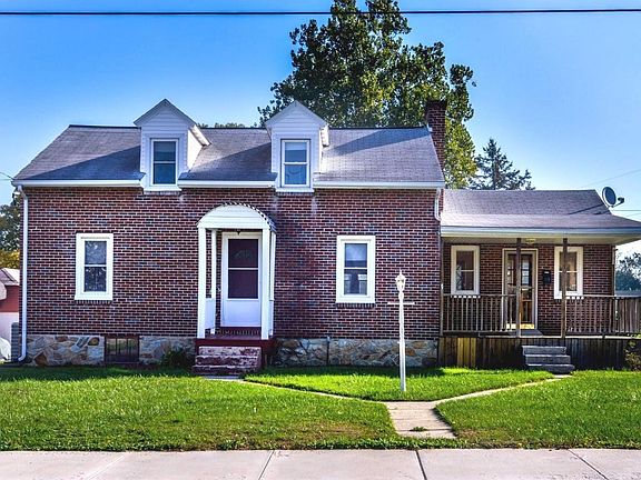 This charming solid brick Cape Cod offers wood flooring, stone fireplace, vinyl windows, front porch, and back composite deck. Updated kitchen with exposed brick wall. Updated bath with granite counter. Newer, energy efficient heat pump/central air. Large corner lot with 2 yr-old shed. Close to park and all amenities.