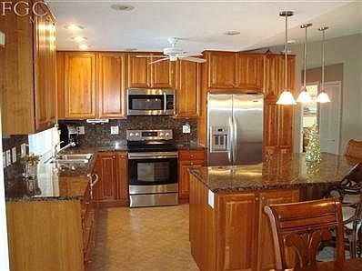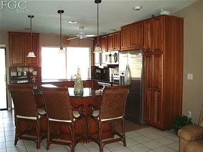 This is Florida living! Located in a prime southeast location, this upgraded gulf access home has many custom finishes, pool and spa, boat lift and wrap around dock and is ready for it's new owner! There is an amazing new kitchen with granite counters, custom natural cherry cabinetry with easy glide drawers, lazy susan, stainless appliances, and a curved island with overhead pendant lighting. Tile flooring throughout the home for easy care and maintenance. This home features a large master suite with crown molding detail, solid wood doors with a sliding glass door to the lanai. There are two large guest bedrooms and an open concept living/ dining area to the kitchen. Step out to the outdoor living space with a large covered lanai area, travertine tiled pool deck, and enjoy overlooking the sparkling pool , spa and canal view. The side yards are lined with areca palms and a coconut tree to provide that wonderful tropical feel. Call today to view this property! Brokered And Advertised By: Berkshire Hathaway Florida Listing Agent: Marla M McFarlane PA