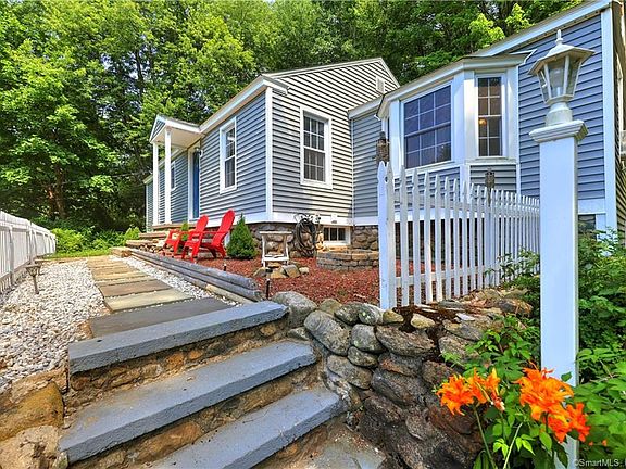 Pride of Ownership Abounds in the cozy ranch nestled on 1.10 private acres! Main level boasts living room appointed with fireplace and beamed ceilings, dining room with built in cabinets and raised panel and crown moldings, tastefully remodeled kitchen featuring stainless appliances and granite counter tops, primary bedroom with full bath offering tiled walk in shower, second full remodeled bath and two additional bedrooms complete this level. The lower level offers den, and spacious storage area. Additional amenities include gleaming hardwood flooring thru out the main level, custom trim work, replacement windows, newer architectural roof and detached garage!