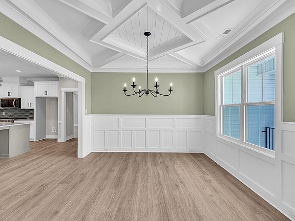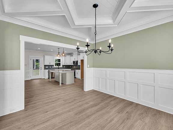 Step into a spacious open-concept design that seamlessly blends the foyer, dining area, family room, and kitchen—perfect for everyday living and entertaining. The cozy family room showcases a gas log fireplace, while the chef's kitchen impresses with a large island bar, granite countertops, ceramic tile backsplash, and sleek stainless steel appliances. A stunning formal dining room features custom coffered ceilings and elegant wainscoting. Retreat to the luxurious primary suite, complete with a dual sink vanity, walk-in ceramic tile shower, and an expansive walk-in closet with custom built-ins. Bedrooms 2 and 3 are thoughtfully placed on the opposite side of the home for added privacy, with a full guest bath nearby. Upstairs, you'll find a versatile bonus room or fourth bedroom, a charming study or craft nook, a full bath, and an oversized unfinished space offering endless possibilities. The finished three-car garage includes a convenient side pedestrian door. Enjoy outdoor living with masonry front steps, a welcoming concrete front porch, a builder-installed aluminum screened porch, and a grilling deck—all overlooking your beautiful 3.09-acre backyard retreat.