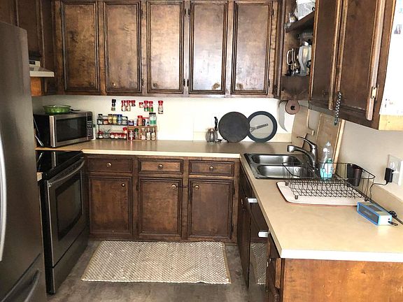 - Kitchen: Counter Tops-Formica, Eat In, Pantry, Cabinets-Stained, Floors-Vinyl