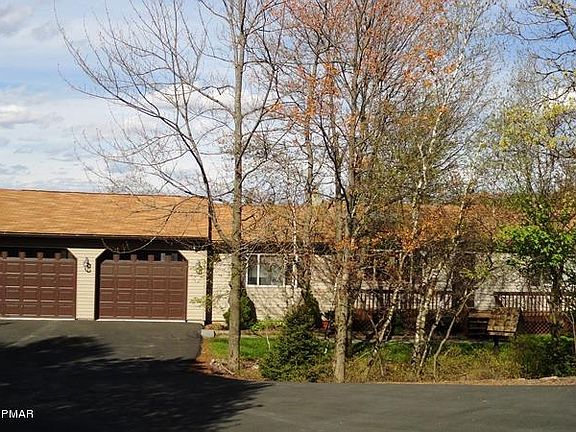 Enjoy your seasons in this rustic 3,200 sq ft, 4 Bedroom, 2 Bath LAKEFRONT HOME with 310' of Lake Frontage and includes Boat, Paddleboats, Aluminum Floating Dock, Hot Tub (overlooks lake), Sauna, Deck Furniture, Grill, Surveillance System. Lake Views from almost Every Room in the House! Kitchen offers Granite Countertops w/Granite Island, New Appliances, SS Sink, Vaulted Ceiling w/Exposed Beam, Dining Area, Family Rm. The POCONO ROOM has: Shiplap Ceiling & Walls, Wall of Windows, Stone Gas Fireplace, French Wooden Doors, Hardwood Flrg & Sliders to the TREX Decks! Main Level: 2 Bedrooms, 1 Bath. The Walkout Lower Level: Family Rm w/Shiplap Walls, Sauna,Hardwood Flrg, Pellet Stove, 2 Bedrooms,1 Bath (Jetted Tub)