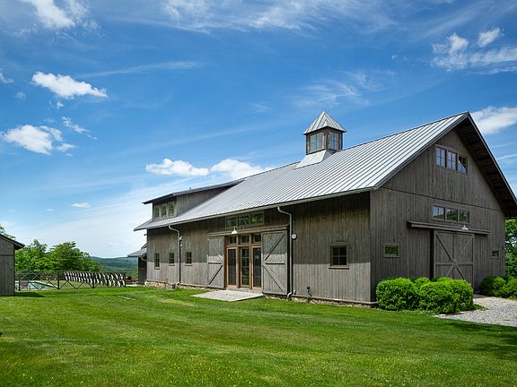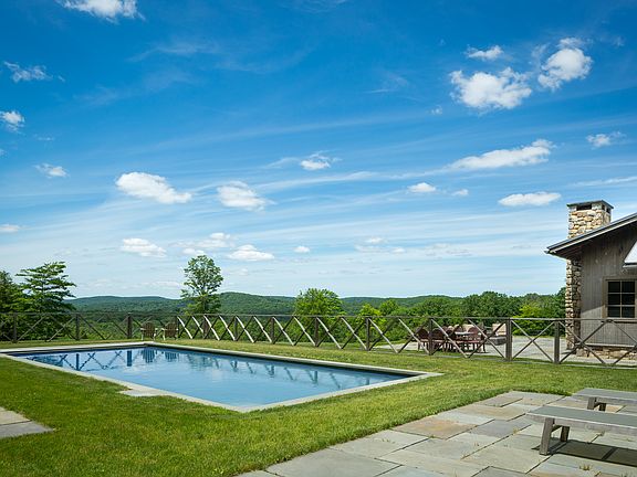 Modern Barn Living with captivating interior spaces infused with a serene sense history and timelessness. Situated privately on 67+ acres along one of Litchfield County's premier roads, the land is a lovely mix of open pasture, orchard, and mature forestland. The home enjoys breathtaking sunset views and is surrounded by outdoor lounging spaces comprised of bluestone patios, outdoor fireplace, and a heated gunite saltwater pool. The home is anchored by a great room providing expansive living and dining areas and showcases the impressive post-and-beam structure. From here, one is led to a spacious eat-in kitchen featuring custom white oak cabinetry, two inch honed stone countertops, and Subzero and Wolfe appliances as well as a sunken living room with fireplace and heated granite floors. The master bedroom suite, with wide plank floors and exposed beams, is located on the upper level. In addition, a custom temperature controlled wine cellar in the lower level and a loft area overlooking the great room. A detached barn as well as two additional approved building lots allows for future expansion and development possibilities.