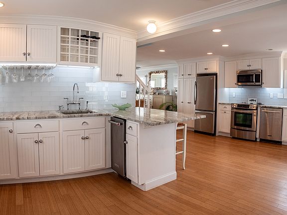 BEAUTIFUL BEACHFRONT HOME - Looking for your own private beach? Enter this year-round home and take in the refreshing views of the beach and the Long Island Sound waterfront. This home was built for gathering and entertaining with its new impressive, custom kitchen containing every appliance wished for in a dream beach home. A living room/dining room combination leads out to the large Treks deck perfect for waterfront grilling and dining alfresco three seasons a year. The private beach holds many beach blankets as well as all of your water toys. Moor your boat out front, place your jet ski(s) on a hand trailer or hang your kayaks and paddle boards on the fence to easily move them in and out of the water. And we can't forget to mention the regulation sized Bocci Court that runs along side the home. Six cars fit in the driveway so if there is an overflow of visitors, use the guest house, 'Dinghy' with a full bath as an extra private space for family and friends. This is sure to be your favorite year round waterfront home on Shore Road.
