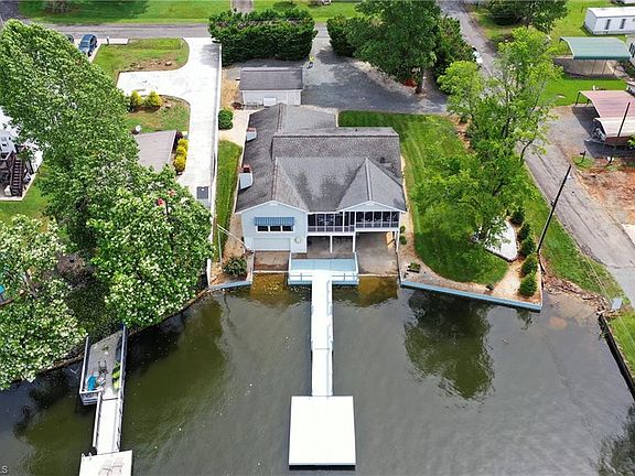 NEW PRICE! REDUCED $50,000. This is the most incredible home on High Rock Lake! Secluded corner lot/evergreen privacy perimeter, a horseshoe driveway w/ample parking for RV, boat trailer or additional vehicles. Semi private area w/street access boat ramp. The only home on the lake that has 1700 SF that currently houses Heavy Duty Pontoon winch and trailer for 28' boat w/remote and 2nd winch system used for storage. The main level is an amazing 2400 S/F Living Area with 3 BRs and study/home office. Sleeps 8 people comfortably & with 3 full baths & 2 half baths no one has to stand in line for a bathroom. The 13 X 30 ft screened porch is a gathering place for all your friends to enjoy fabulous lake views and a little wine and appetizers. 20X24 Oversized garage w/remote door opener and prewired for a whole house generator. Hybrid HVAC system (Dual Fuel) high efficiency heat pump w/oil furnace less than 3 yrs. old. 12 X 16 Floating dock w/9-10 Feet channel depth when lake is at capacity.